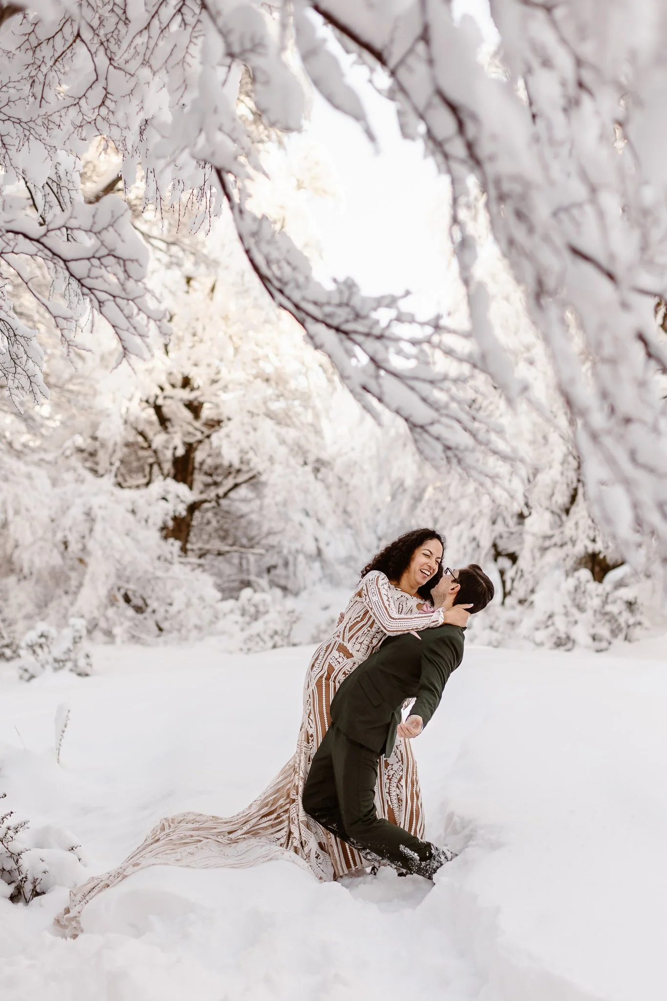 They later met their awaiting guests against the backdrop of a stunning snow-covered landscape for a short ceremony officiated by their best friend. This enchanting scene unfolded amidst a historic snowstorm, closing the park for the first time in two decades. Undeterred, the day unfolded at the Lago Grey Hotel, and it was spectacular! With a big blue sky, warmer temperatures, and unbelievable views, it felt like we were in a dream. There’s beauty around every corner when everything is covered in a fresh blanket of snow.